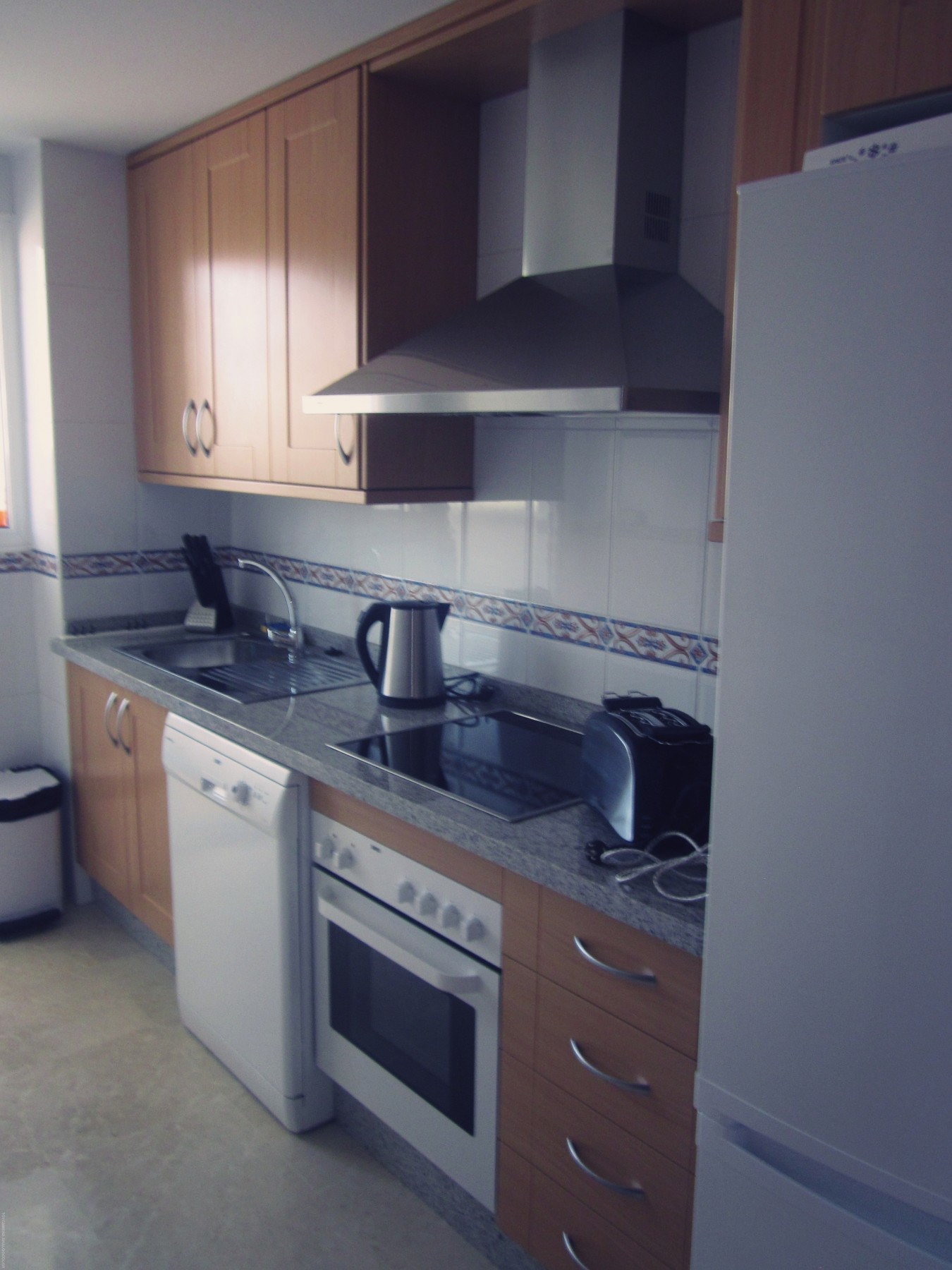 Cocina equipada: lavavajillas, microondas, horno tradicional, tostadora, exprimidor, batidora, cafetera y máquina de café Dolce Gusto.